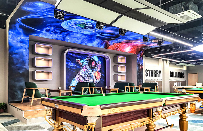 「健身房、台球室手绘墙」星空台球
